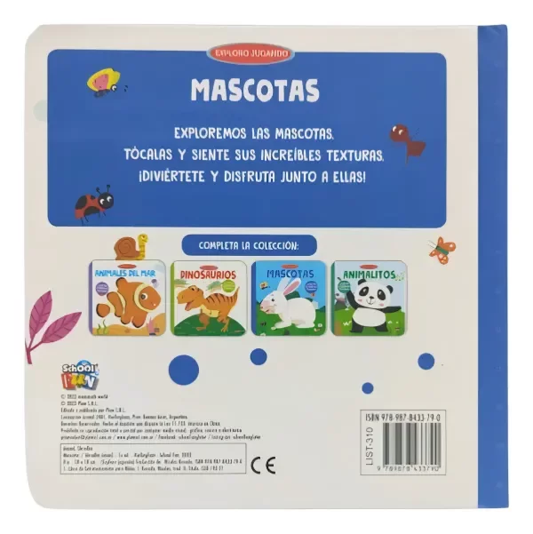 Este libro con texturas invita a tocar, explorar y aprender sobre los animales de compañía mientras se fortalece el vínculo afectivo y el desarrollo sensorial.
