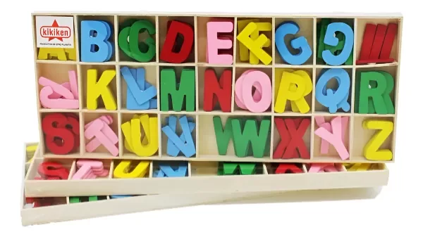 Caja Abecedario Completo de Letras de Madera, un material didáctico ideal para niños de 3 a 10 años. Este juego incluye 5 abecedarios completos.